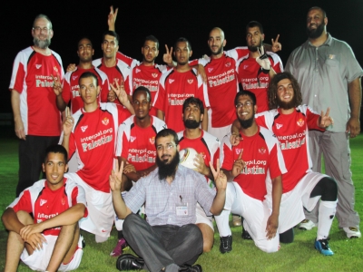 المشاركون في ملتقى الإخاء يخوضون مباراة كروية على ملعب اليرموك