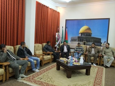بالصور : طاقم الأقصى الرياضي يزور الحاج عبد السلام اسماعيل هنية