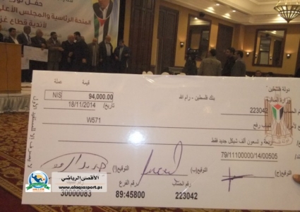 لقطات من توزيع الشيكات المالية على أندية غزة