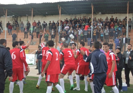 فرحة هستيرية للاعبي خدمات خانيونس مع الجماهير