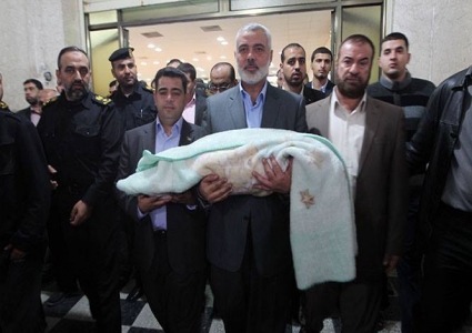 رئيس الوزراء هنية يودع حفيدته ( آمال عبد السلام)