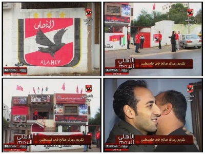 صور..رمزي صالح يهدي رابطة مشجعي النادي الأهلي بغزة قميص أحمد حسن وفانلته الخاصة