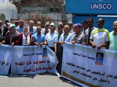 رياضيو غزة يحتجون لمنظمة الأمم المتحدة ..