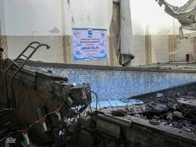 شاهد.. ربع مليون دولار تكلفة إصلاح مسبح دمرته طائرات الاحتلال!