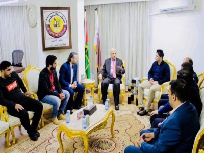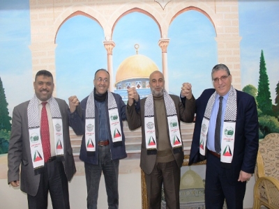 وفد من مؤسسة أمواج الرياضية يزور اللجنة القطرية بغزة مهنئاً بتتويج منتخب قطر بكأس آسيا