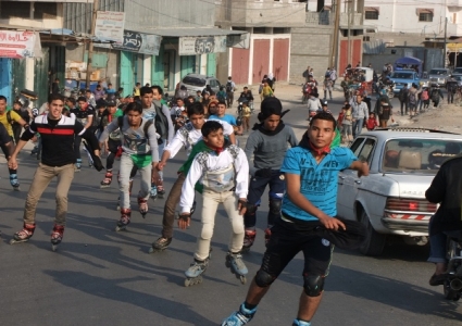 بالصور : مسير رياضي للإسكيت برفح تضامناً مع الأسرى وإشادة بالهكر